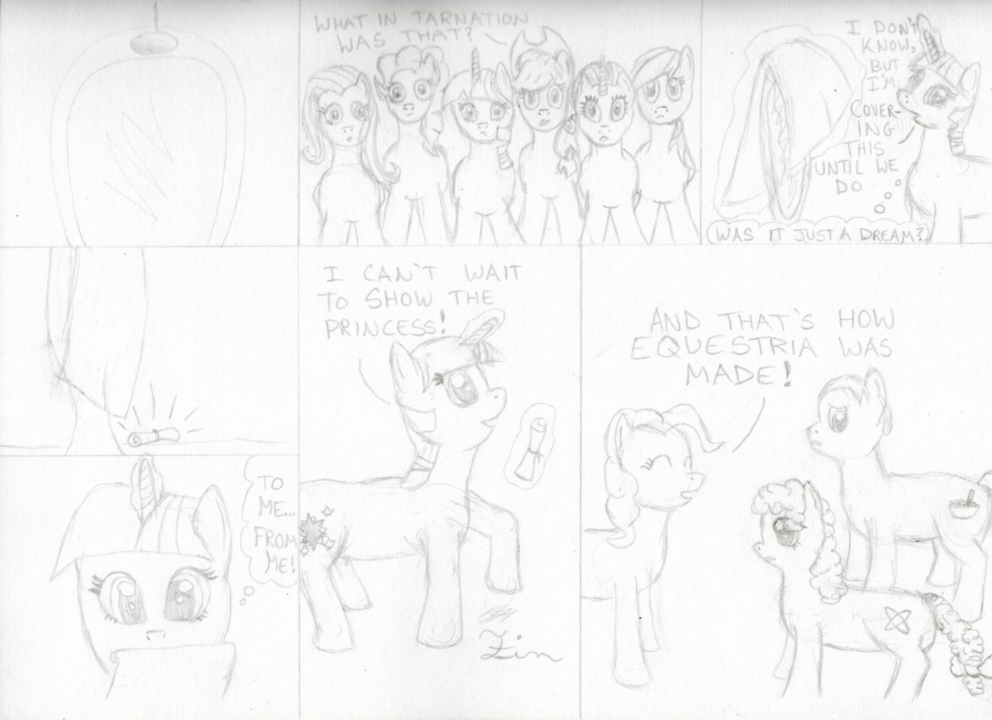 to being out. Anyway, this ties up some loose ends left from the original. Plus I got to do a ‘Pinkie Pie the unrelatable narrator’ gag while I was at it. I also did the blogpony bonus theme there, drawing ponified Cereal Velocity and Sethisto (for those unfamiliar with Equestria Daily, they are two of the admins). I totally forgot the horn in my interpretation of Cereal (as I did intend to stick with popular opinion that he’d be a unicorn), but after looking at it again, I think it would have messed up his Cave Johnson (see Portal series) style hairdo (he’s done pony parodies of the Portal 2 commercials), so he gets to stay an earth pony in my interpretation. Sethisto is a mare, well, because of a comment Phoe made on the training grounds that he prefers the way mares are drawn (I’ll be honest here, I have to agree with him). So naturally I produced Seth the pretty filly.