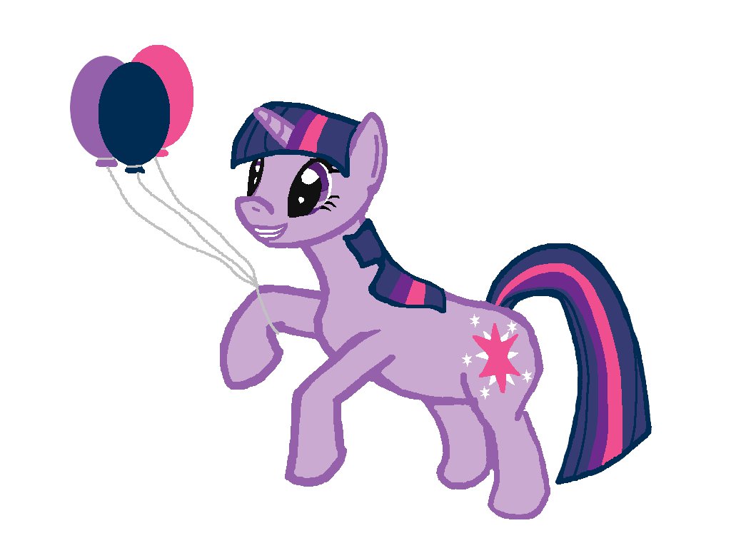 “But this isn’t very musical at all!” one might say. Well, I’ll admit it isn’t, but the theme is (as always) open to interpretation, so I drew Twilight here while inspired by a single song. Finding that song was a bit tough (I randommed through 250 songs on my iPod until I found something that inspired me). I wanted to draw a happy Twilight today and Guardia Millennial Fair (from the Chrono Trigger OST) just happened to come at the right time. As a result, Twilight is cutting loose and letting her inner filly out as she prances around with a bundle of balloons. 😀