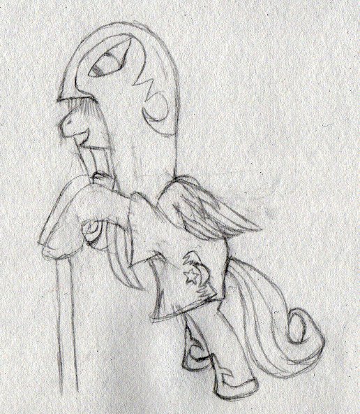 I’m doing another scene for the ATG takeover role-play arc, but the drawing isn’t going to be done tonight (it’s rather large again, although not as massive an undertaking as The Coup was. So tonight is a sneak preview of what’s to come in the form of the sketch I used to lay out the pose for our beloved corrupted overlord, LunarApologist. Nothing seriously out of the ordinary here, just had a tiny bit of trouble getting the hind legs correct. Oh and I had a lot of fun coming up with the hood design.