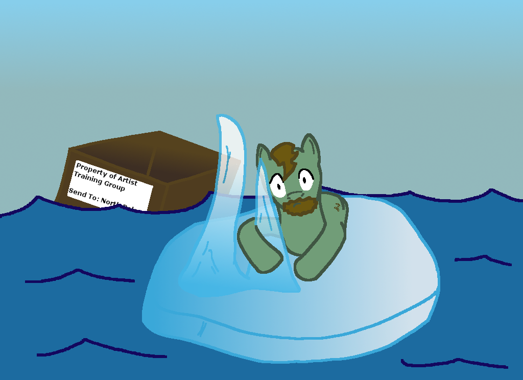 This is my third submission to the DA Artist Training Group’s week 7 theme: draw a pony chilling. This drawing features another scene from the admin coup role-play. The sole pony in the drawing is Nullh’s ponysona. And he appears to be having a bit of trouble. π