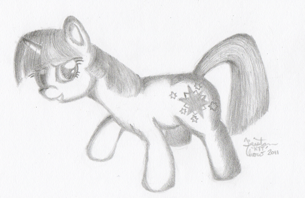 I went into this drawing not really knowing what I was going to do. Basically I started sketching and ended up with this pose, which is Twilight looking all smug and ready for battle, because she knows she can beat you in a magic duel. Just try it.