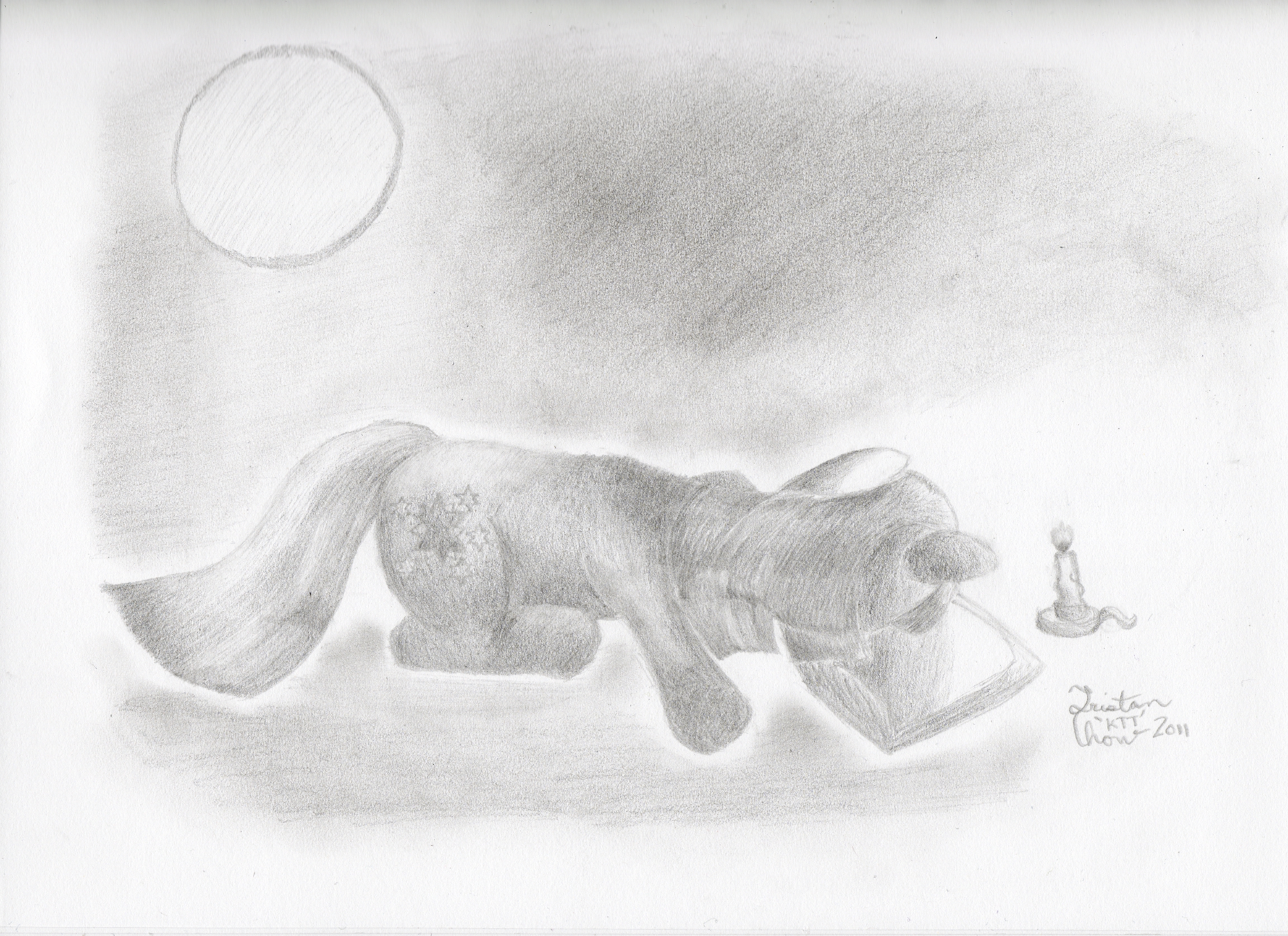 Hehe I remember the days when I used fingers… or tissue to smudge the shading. It’s like a storybook Twilight Sparkle. Maybe you can write a cute Twilight storybook to help me fall asleep at night. The pillow needs to look fluffier and less like a tablet. 😛 I like the overall dreamscape otherwise.