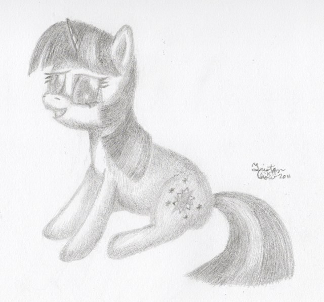 Well, I was going to do something quick and easy tonight since the last week (19 works over 27 pages over 7 days…) basically destroyed me. But then I saw this, which made me incredibly sad, because no matter what I tell myself, I still have a soft spot for Twi. So I decided to draw another happy Twi. But I was bored with standard standing poses after spamming 60 of them yesterday. This then become pose practice. But then that turned out well enough that I just had to shade it. Two hours later…