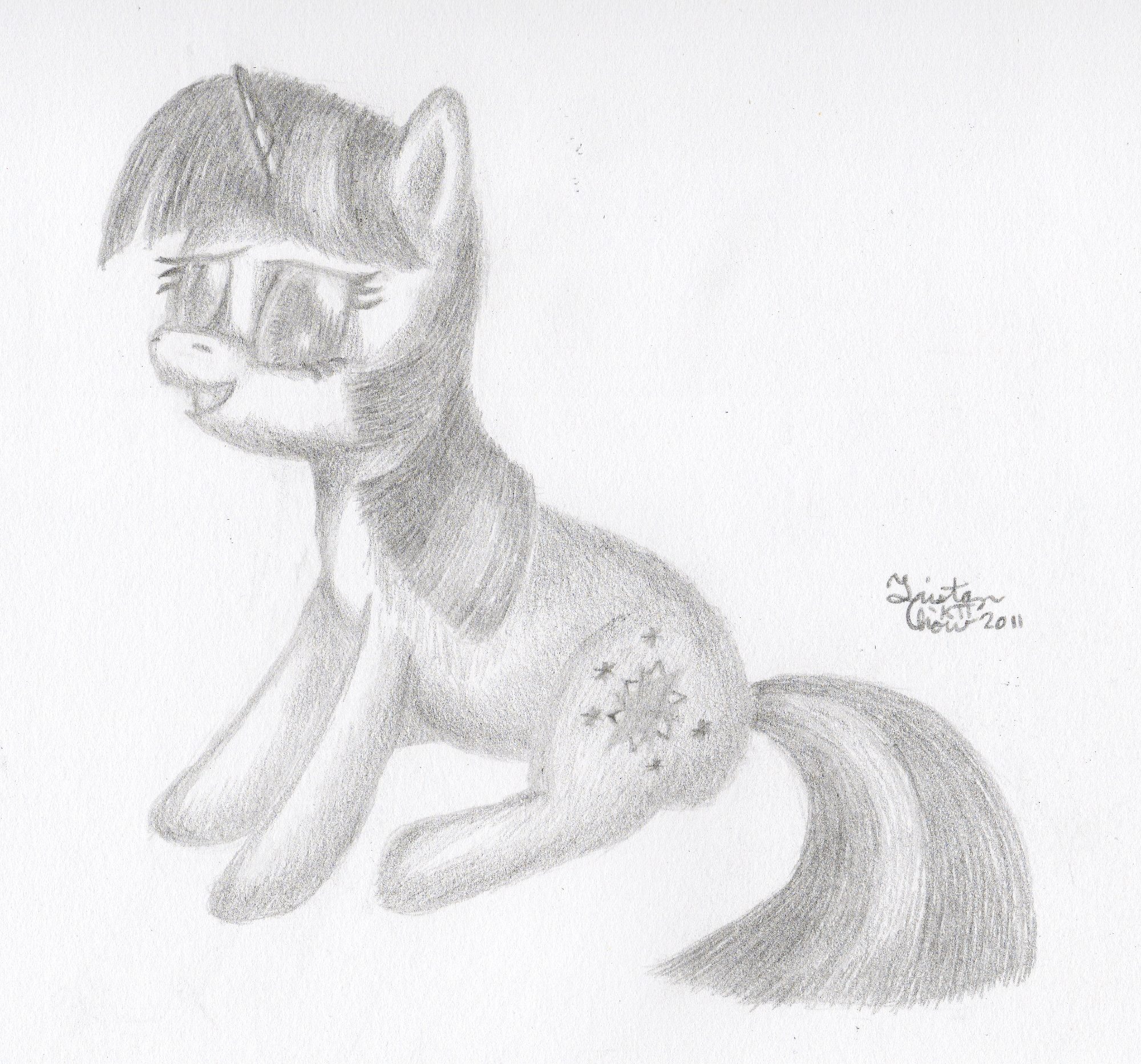 Anyway, I think my hair technique is improving. I’m extremely happy with the bangs in particular. I’m also really starting to get the non-hair shading, which is good, because that makes up the larger portion of any pony I’d be shading. The legs may be very slightly undersized, but I’m not really sure. Oh and the expression ended up looking almost a little smug.