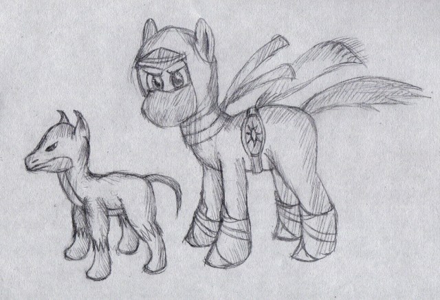 Well, other people have done FF6 for themes in the past and as a big fan of it (it’s my favourite FF and ranks among my top 5 favourites for RPGs in general), it was kind of shameful that I hadn’t at least done something for a crossover. Anyway, this theme presented an opportunity, so this is a 1 hour sketch where I ponified Shadow the ninja and FiM styled Interceptor (his dog for those who don’t know).