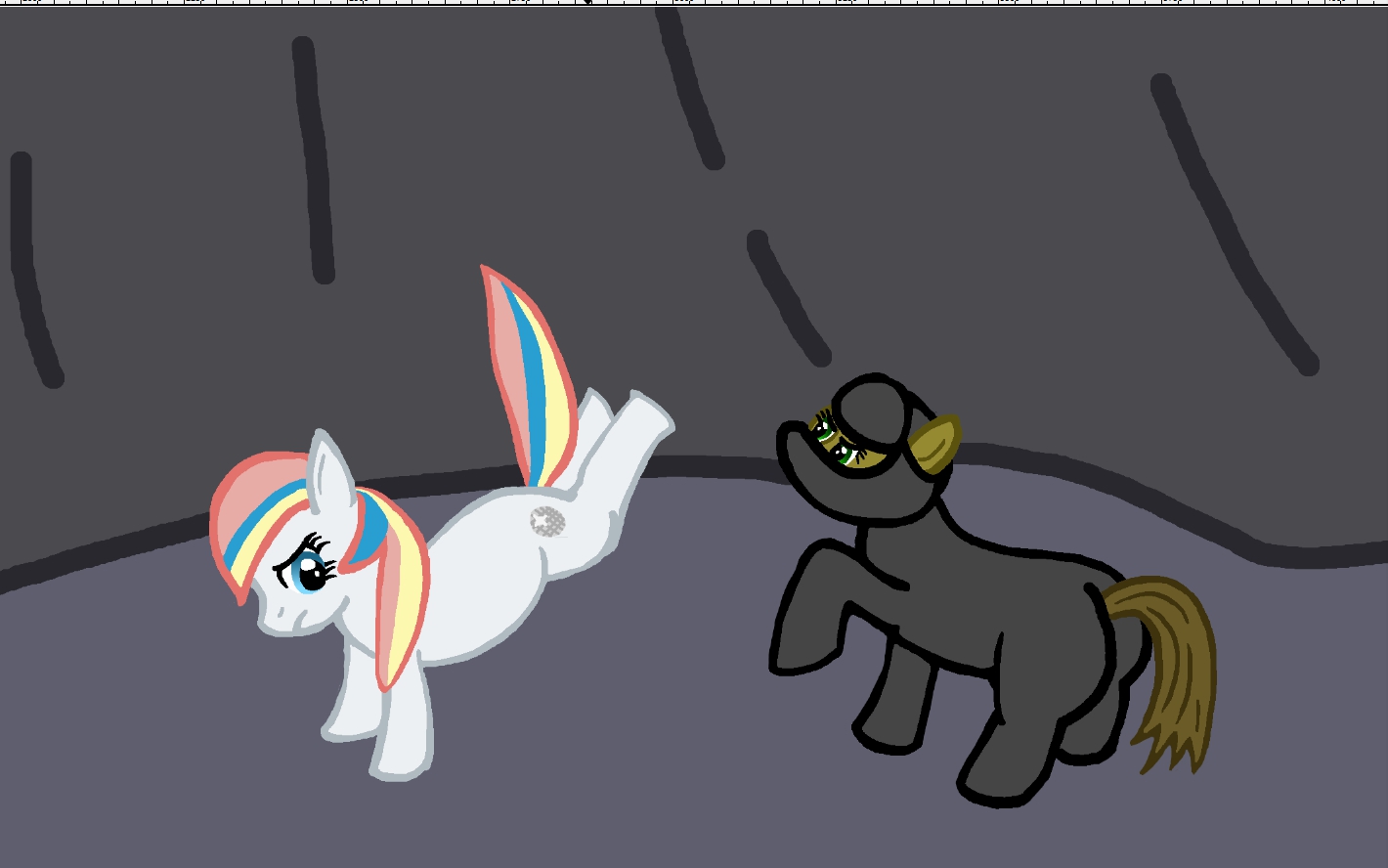 Well, this is proving to be a rather long haul. There’s pretty much no way I’ll finish tonight, but I wanted to show off some of my progress. So here’s Chromadancer really trying hard to clobber that ninja. Yes, a ninja.