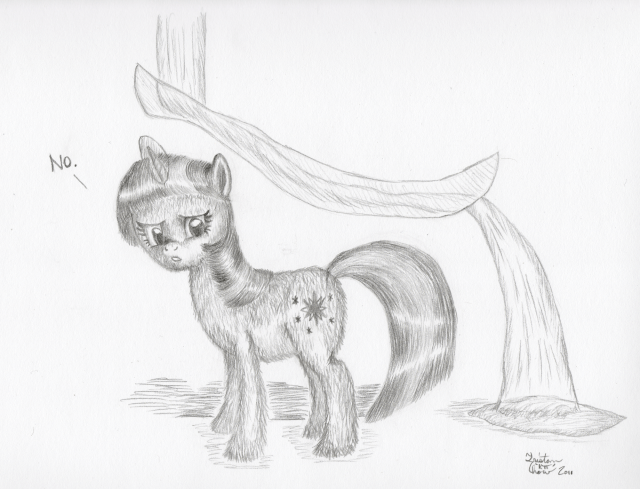 Took about 3 hours to do this one. Used my 2H-HB-2B trio as usual. Used the same technique as last night, but tried to do shorter strokes, so Twi didn’t end up as shaggy as Shetland Applejack.