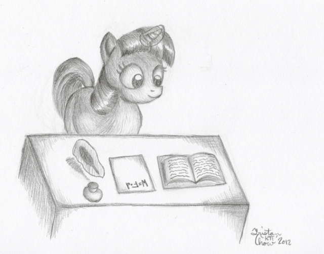 Anyway, first submission for the Artist Training Grounds’ week 28 theme: draw a pony doing work. Twi’s doing two kinds (yay).