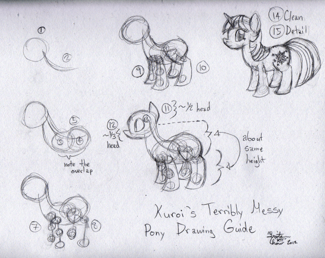This is my first (and possibly only, given the theme) submission to the Artist Training Grounds’ week 29 theme: draw a guide on how to draw ponies.