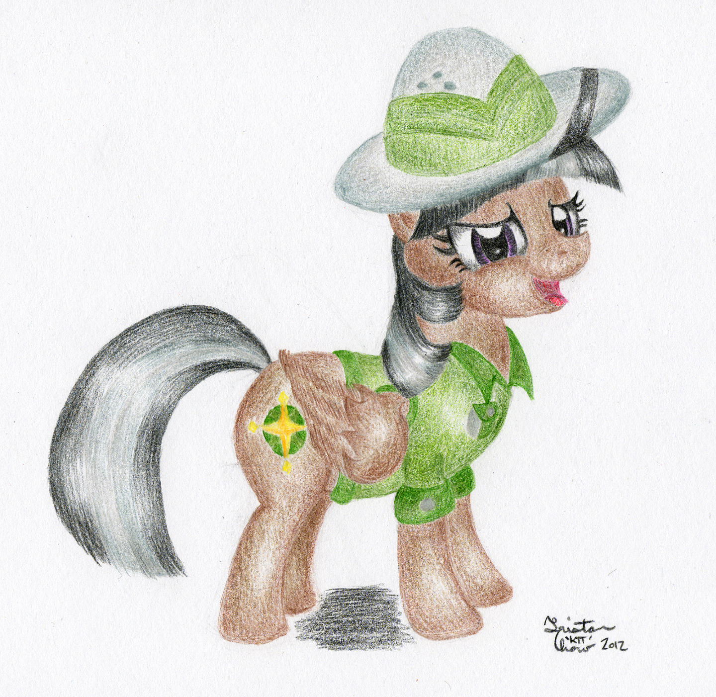 No amount of tone adjusting could get the coat to look like it does in real life. For whatever reason the scanner really, really likes to pick up the brown outline, but not the umber in the middle, so she appears browner with larger highlights than she should.