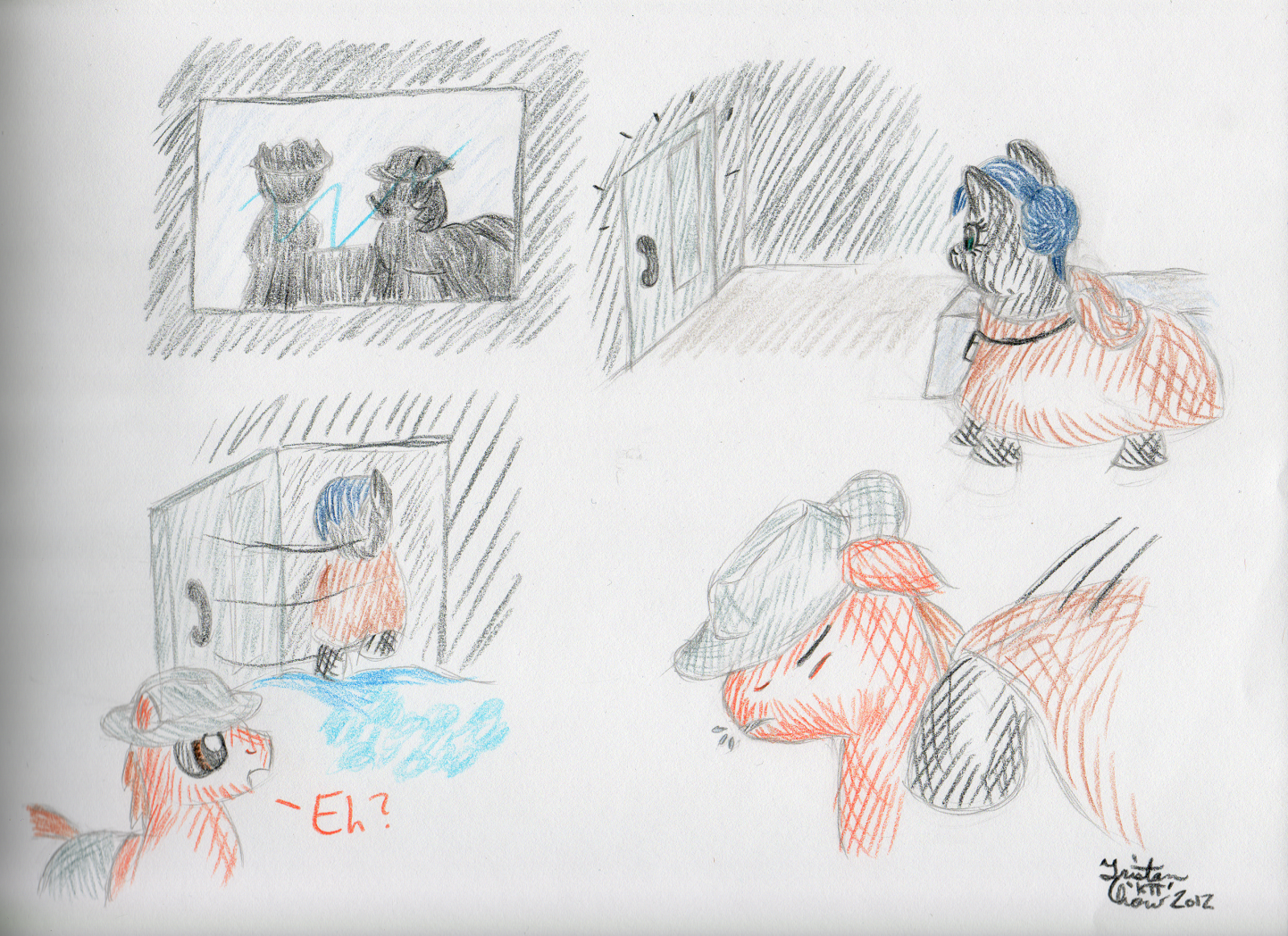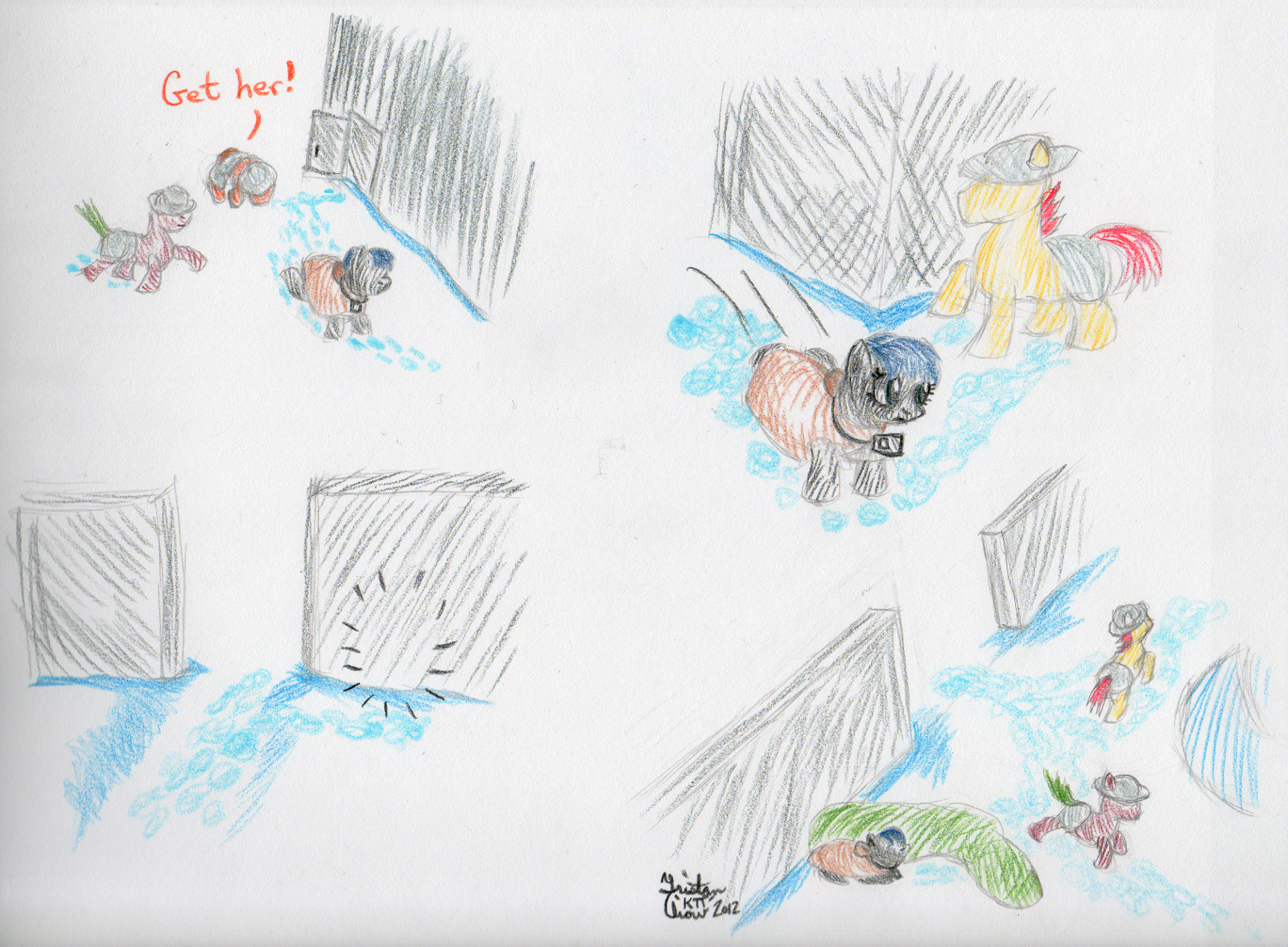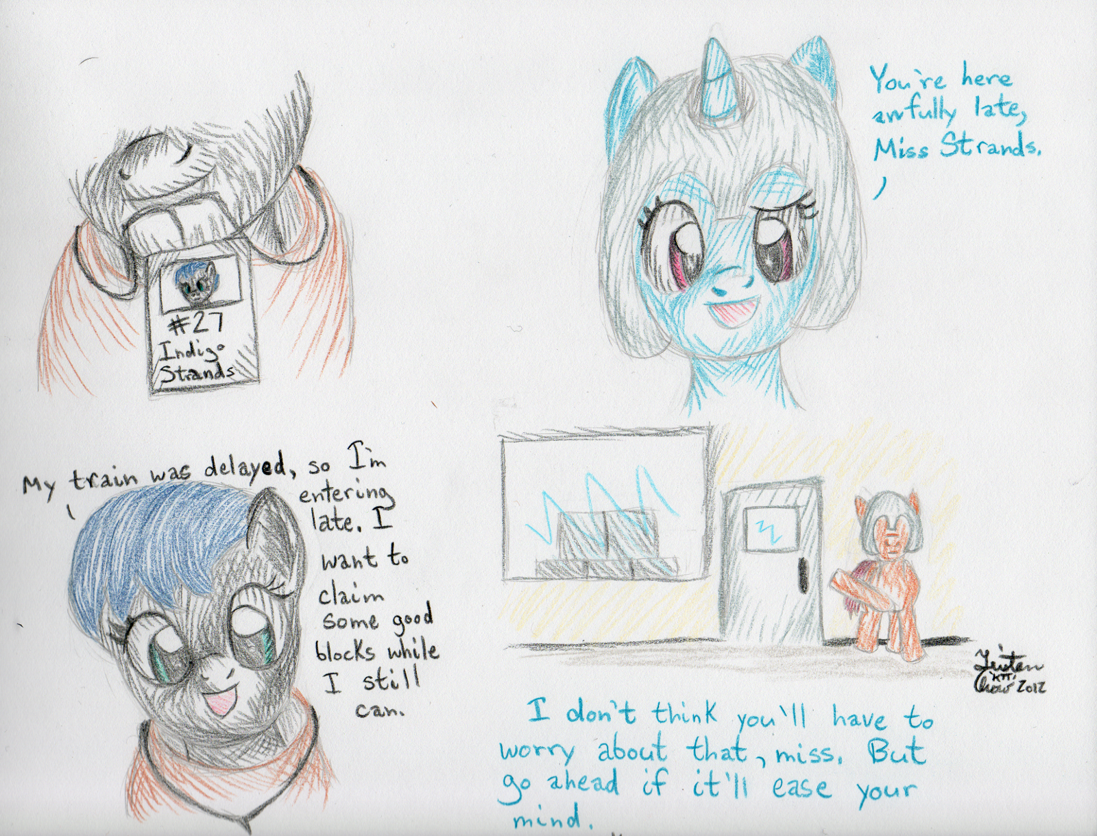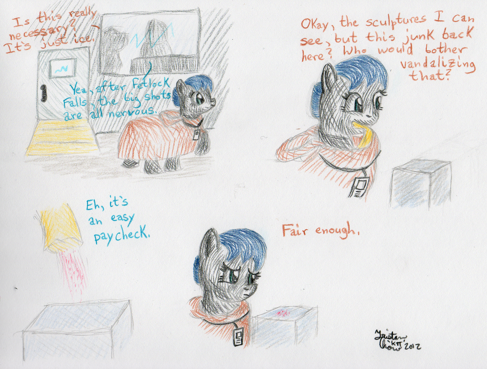 38 panels of colour in roughly 2.5 days. Never again. Any future endeavours of this size I’m going to spend about twice as long so I don’t wear myself down again. The first and ninth drawings are doubling up as my second and third submissions for the Artist Training Grounds’ week 38 theme: draw a pony sculpture.
