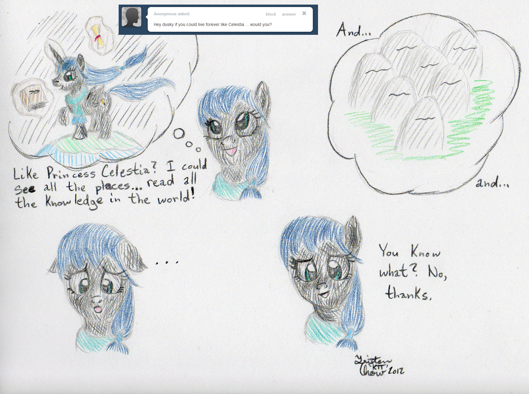 Doubling this up as my first submission for the Artist Training Grounds’ week 39 theme: draw a pony as another race/species. The theme was pretty much perfect for this question as it let me throw together a quick design for an Alicorn Dusky.