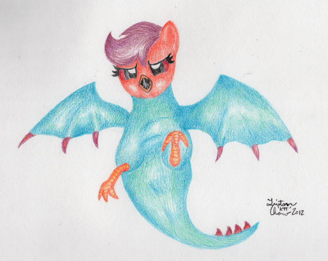 The little scale like lumps were meant to kind of imply the texture over the whole thing, but they didn’t turn out as well as I’d hoped. On the other hoof, the wings turned out way better than I anticipated, so I guess it’s all even?