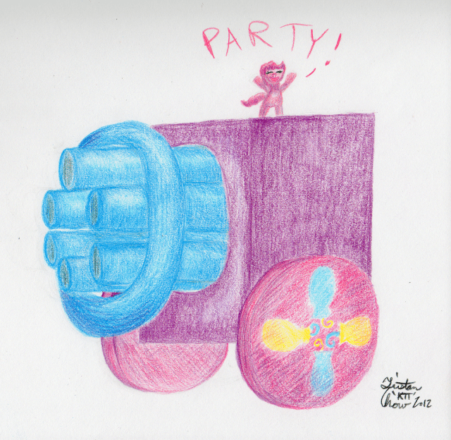 This is my third submission to the Artist Training Grounds’ week 43 theme: draw a pony technological advancement. Well, I figured I should do something non-Internet related, and the season finale kind of got my gears turning in a strange way. Basically it got stuck on machine gun Twi and the party cannon during the clobbering montage. This did end up looking a little cruder than I intended (since it’s Pinkie, I wanted it to look a little thrown together), but it was still pretty fun to do.