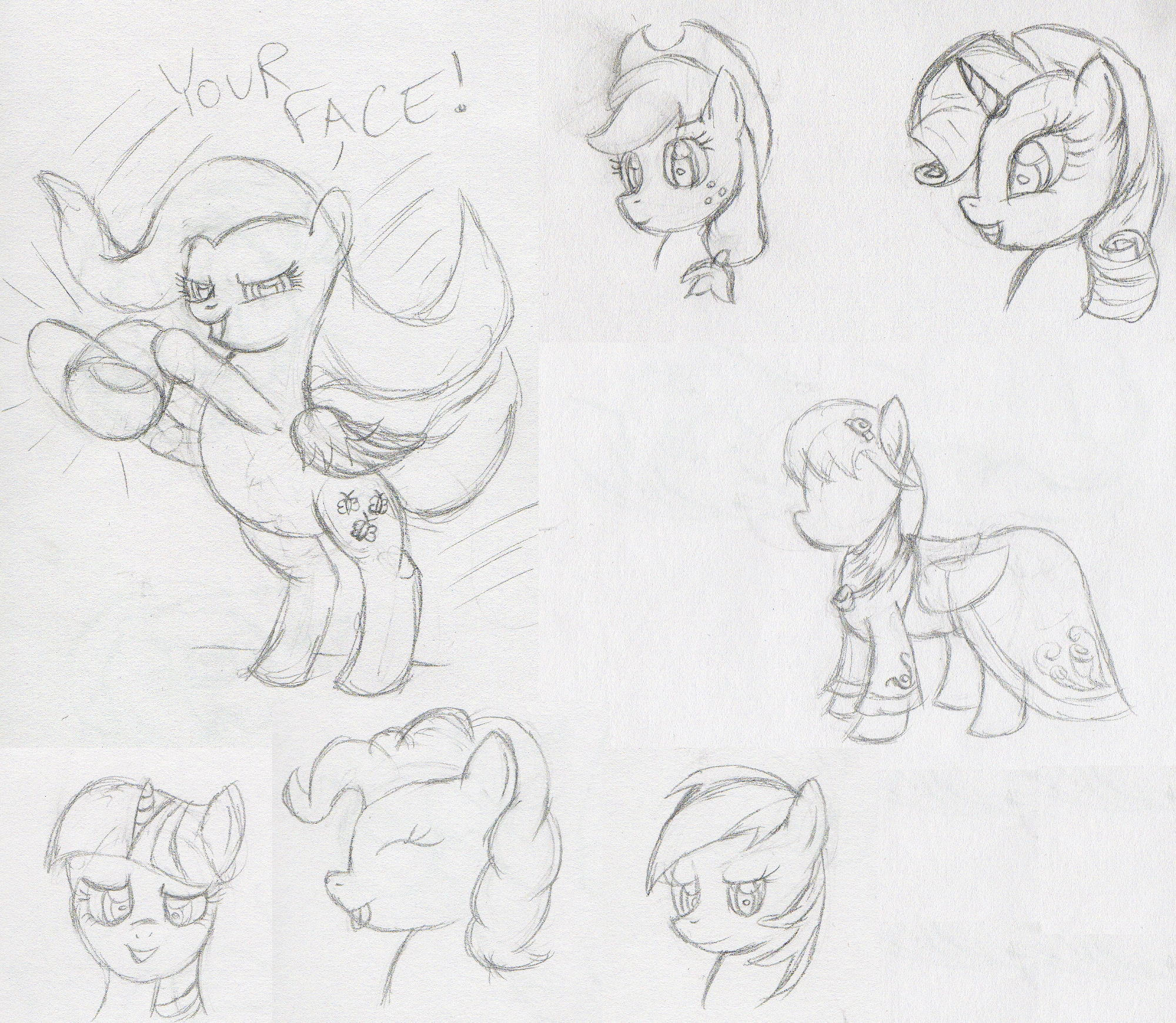 This is about 4 pages worth of small sketchbook mashed together. This is all stuff I drew while out on the trip, pretty much without reference and without a good place to brace myself. So forgive me if some of the details are off. Anyway, I thought the Discorded!Fluttershy ended up looking pretty good, so I’ve decided to put it in as my second submission to the Artist Training Grounds’ week 44 theme: draw a pony being villainous.