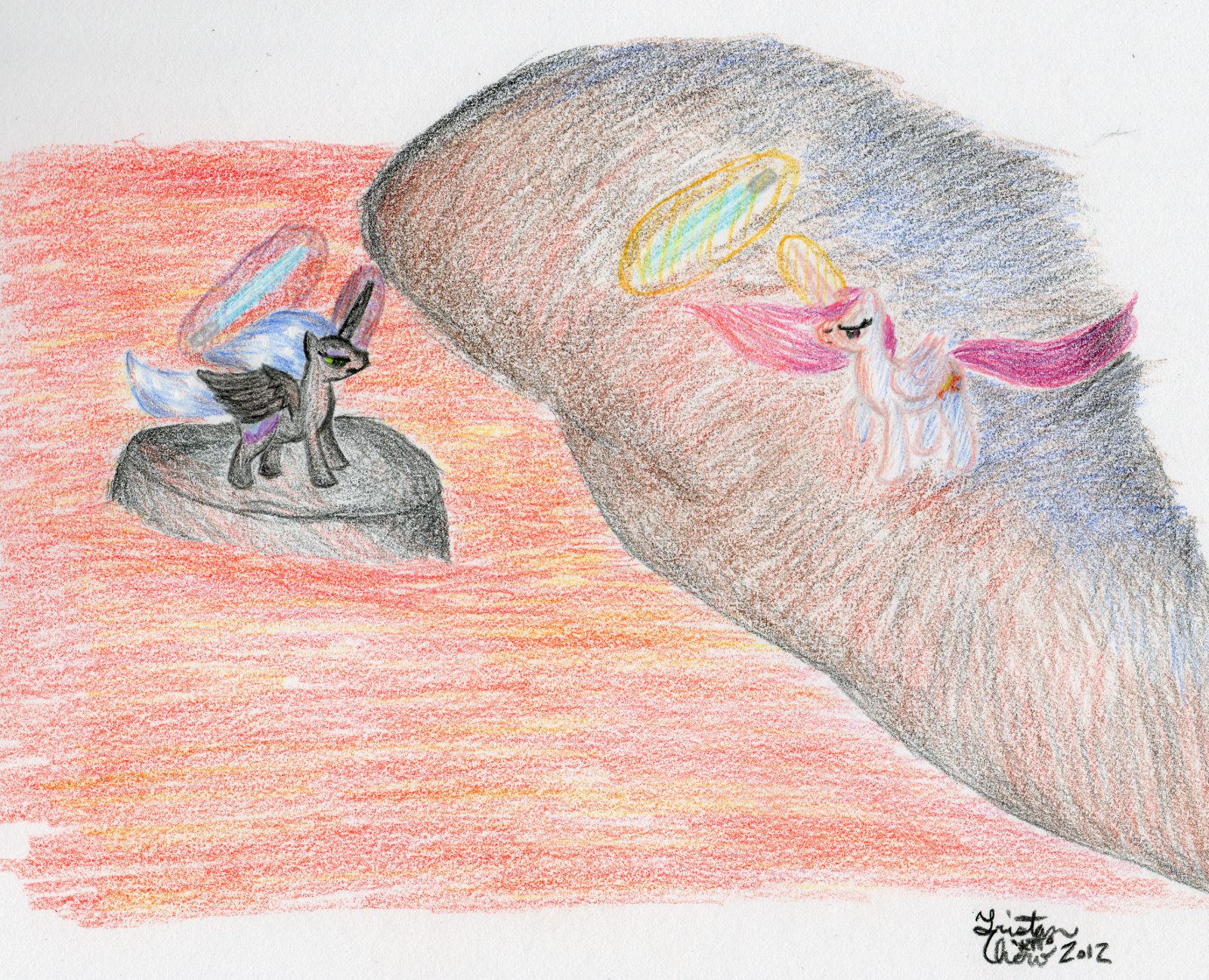 This one was a little faster than usual, clocking in at roughly 3 hours. I decided to take this as an exercise in a couple things: the first not obsessing over detail on smaller ponies. I think I succeeded in making it look less cluttered. The other was to continue to be aggressive in colour blending. I took a few risks here, especially with the porcelain blue and my orange. I’m happy I did.