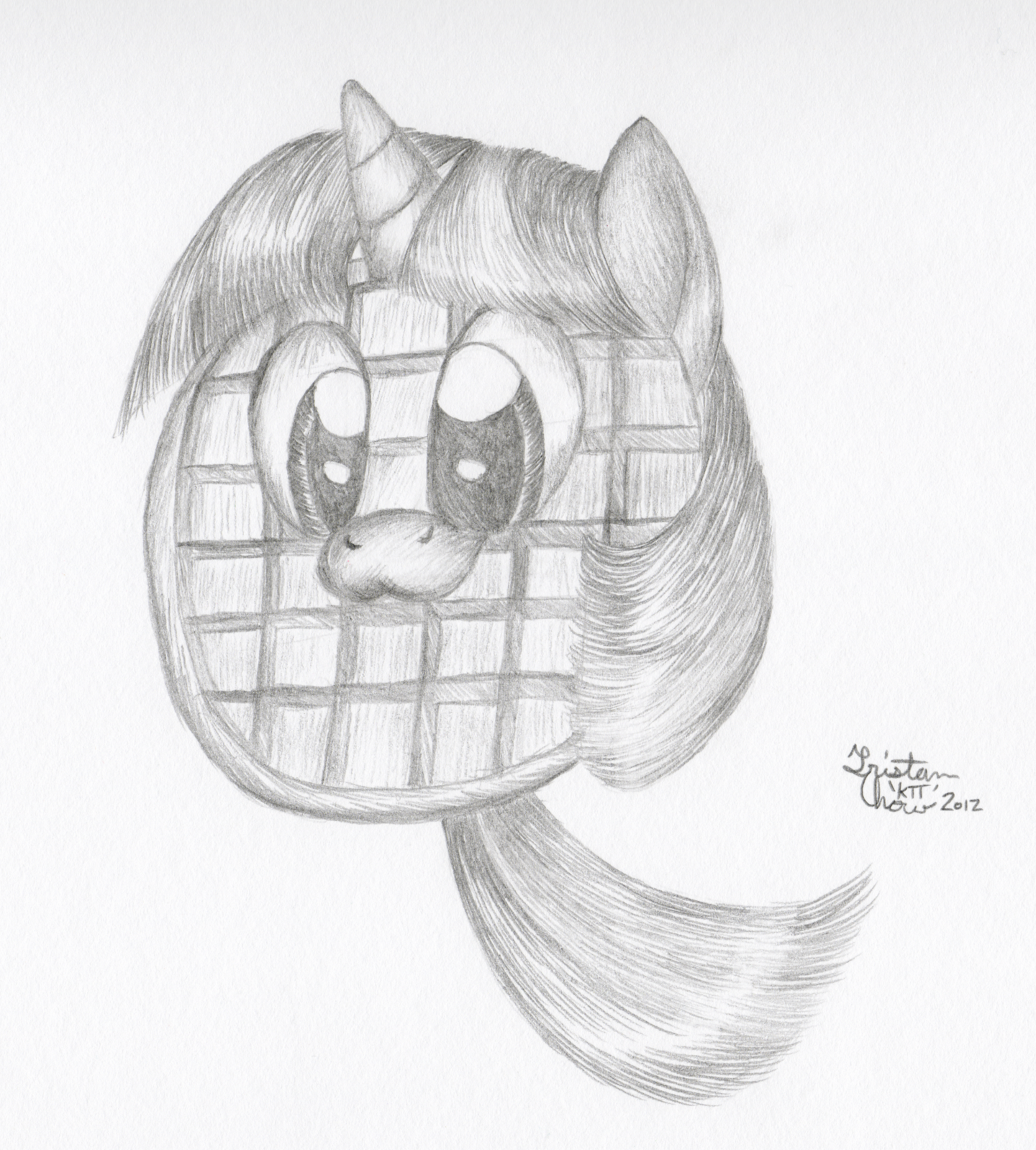 Anyway, waffles on the brain gave me a second idea I couldn’t resist doing. So have another submission to the Aug NATG2012 Day 10 theme: draw a pony making a decision or waffling.