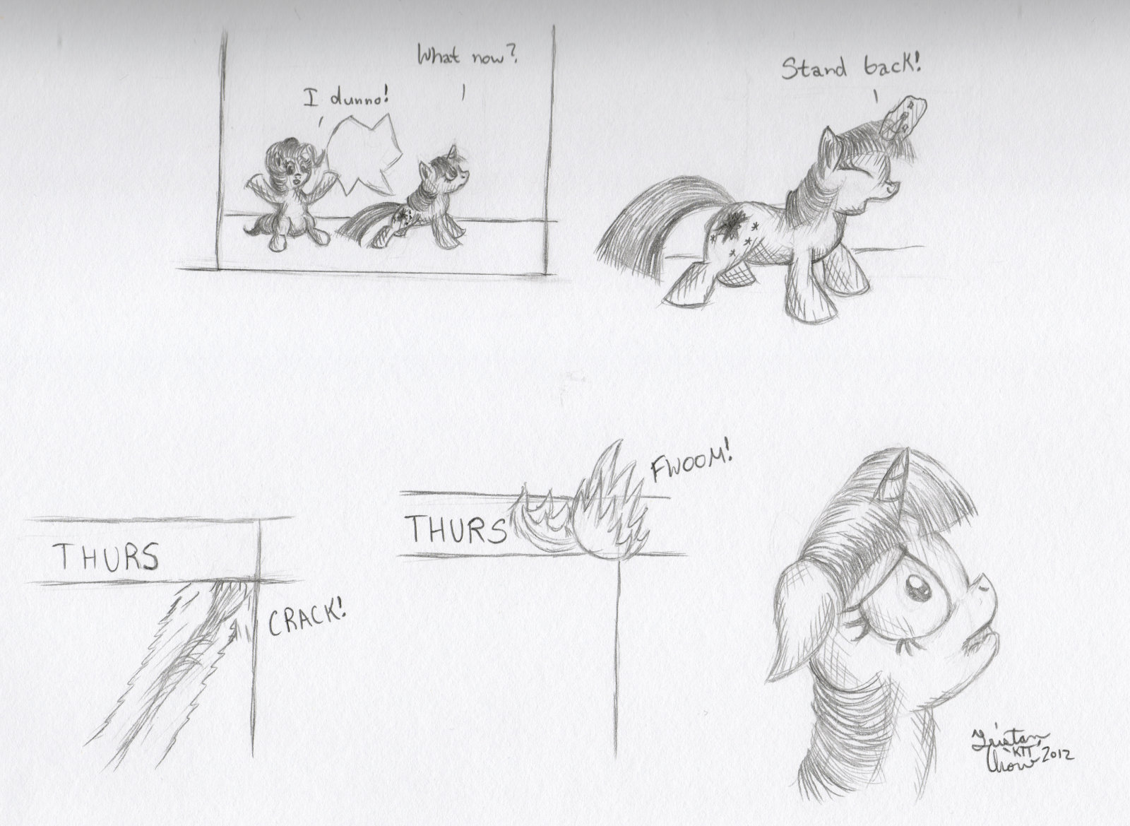 This is my submission for the Aug NATG2012 Day 17 theme: draw a pony under pressure or feeling the heat. And I think I encompassed both.