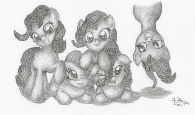 Decided to experiment a bit with Pinkie’s hair and try the curly interpretation. Figured doing it five times would give me a good feel. I kind of like it, but not much more than my old way. So now I’m torn.