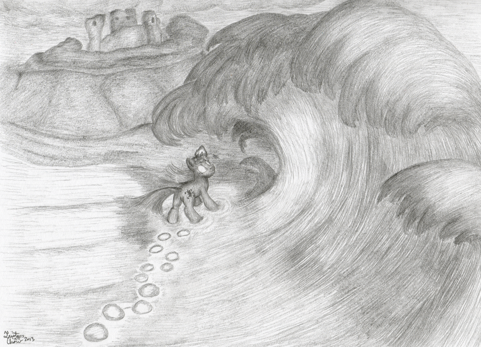 This is my submission for the Artist Training Grounds’ week 85 theme: draw a pony doing the time warp. I’m sure many MtG have already gotten what’s going on. For those who don’t, I did my own take on this card. I changed quite a few things, since I didn’t want to just eye trace the card art (also, I suck at water).