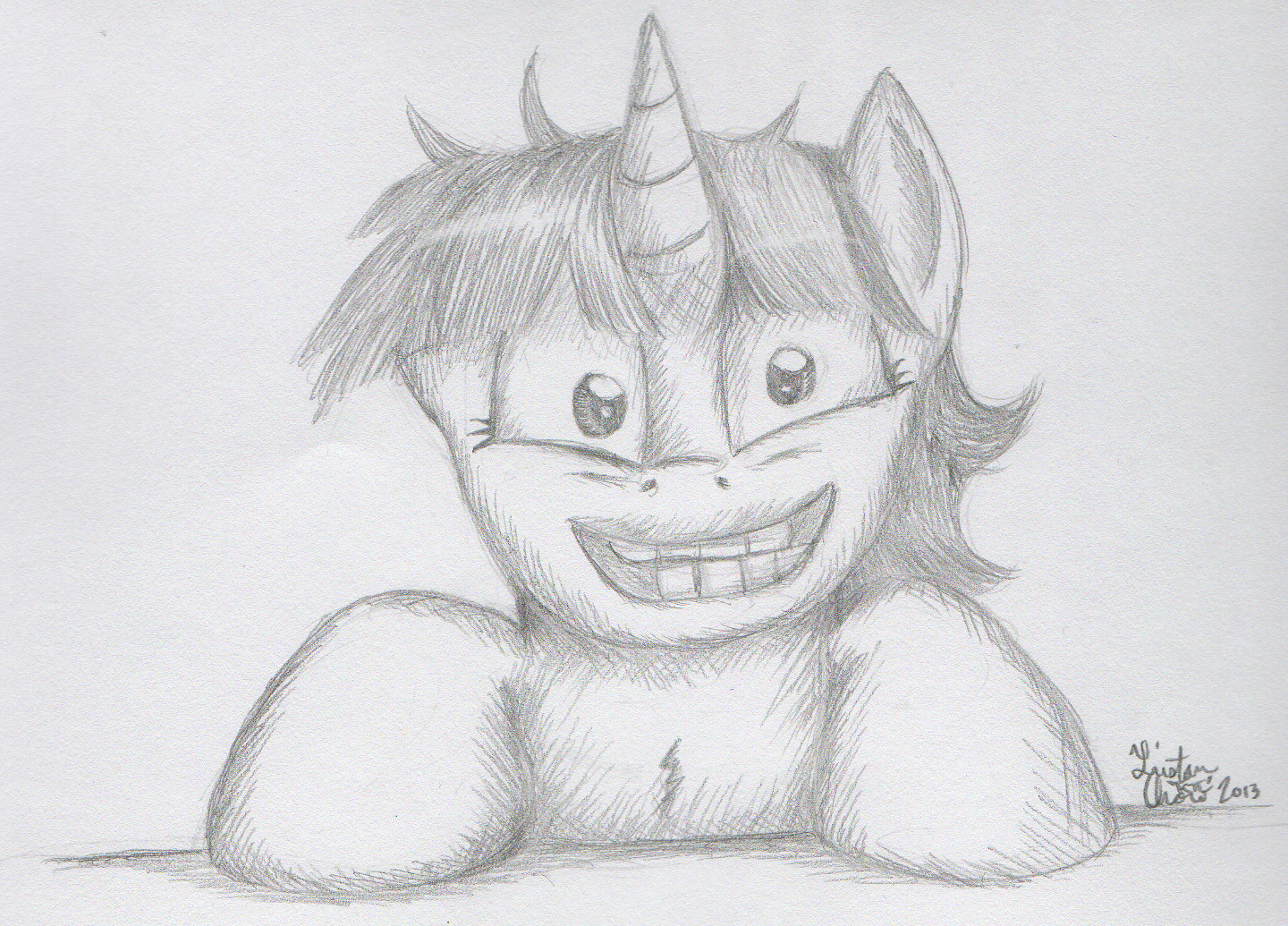 This is a quick thing I just chipped at for a handful of minutes before bed at BronyCon. I ended up getting a Cutie Corral!Crazy!Twi plushie early Friday and it put me in the mood to draw this.