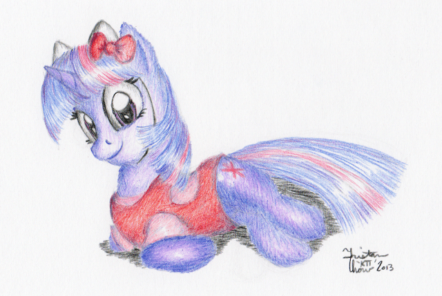 This idea came about because my parents accidentally called Hello Kitty “My Little Kitty”. Because Tara Strong is the voice for both characters, I decided the only appropriate response was to put Twilight in a Hello Kitty costume. So have just that.