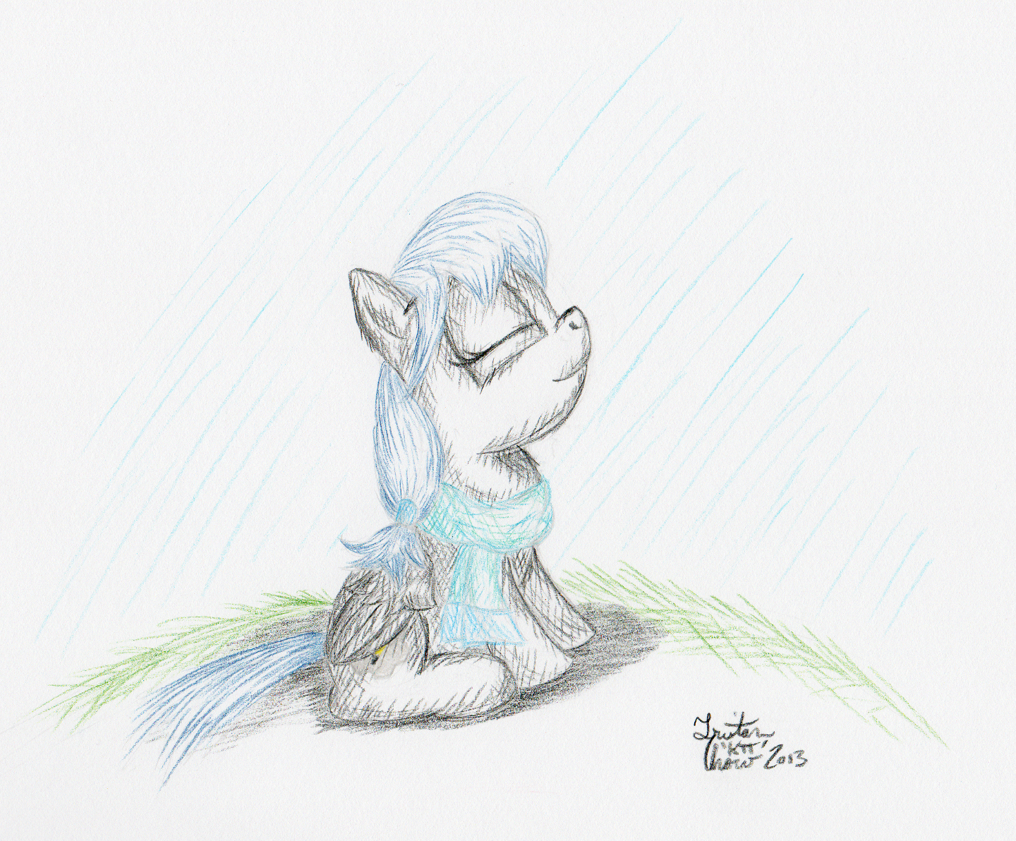 This is my submission for the NATG2013 day 5 theme: draw a pony on a hilltop or rising. This one’s a bit more straightforward, but it’s always fun to draw Dusky just enjoying the moment.