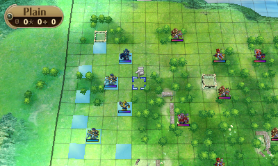 -Best position is turtling the upper-left Fort. With the Woods around it, this allows for a formation with Morgan being the first frontline target (able to kill two enemies per turn with a bow) with Robin on the Woods just north of him. With all the Woods tiles next to these locations, it gives enemy non-Wyv melee a tough time engaging in a timely manner, including likely being short of targeting Robin when approaching. This jam-up also causes 1~2-range enemies to engage Morgan at 2 range, letting him kill them and an opportunity to Sol. Unless the axe enemies have Hawkeye, do not kill them until the rest of the enemies are dead. The idea is to eliminate all incoming Hawkeye axe users and non-axe users until the tanking formation is entirely surrounded by axe users. This will bodyblock the more dangerous enemies from getting hits in. This is important, since between random Luna+ and regular Luna on the GKs, there is a lot of potential RNG for incoming damage.
