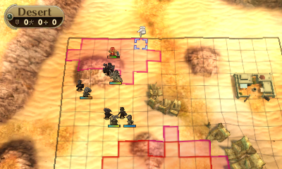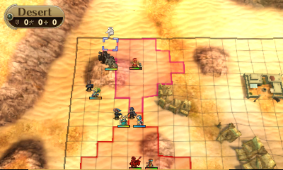 -Move everyone other than Robin out of danger. This should be largely trivial because everyone will have way more Move than the enemies while in the desert and the DMs will all be too far back to catch up. However, the previous turn may complicate Nowi and Gregor a little. If they were attacked, they will likely have to move and Transfer-pair to Lissa and Ricken in order to escape. In an even rarer case, Ricken may need to first move 2 tiles right of Miriel so that Nowi can Transfer-pair to them. If they were able to unpair, they can simply pair to Ricken and Miriel.