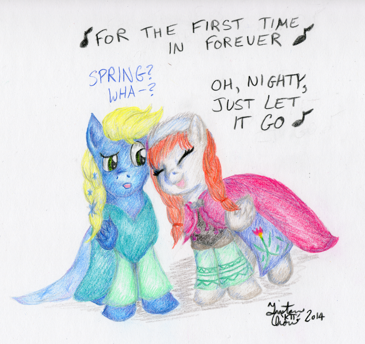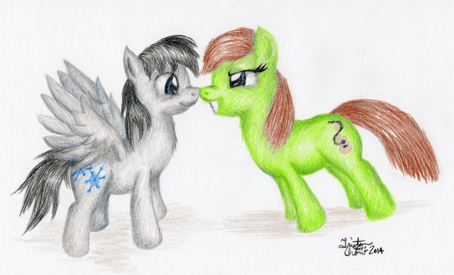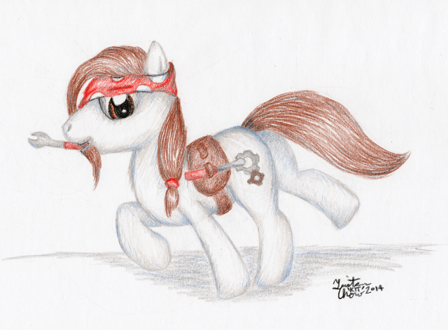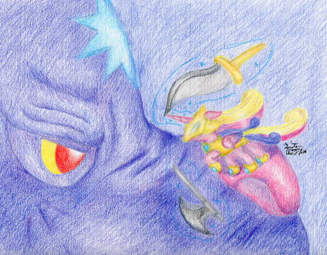 Done with Prismacolor Premier coloured pencils and probably among my favourite blending jobs. I wanted to make this pretty over-the-top, but I realized after I finished that I could’ve probably gone even further by making the weapons flaming or shooting rockets or something. Also, the Ursa Major may not be quite to scale… though still larger than an Ursa Minor (pretend Cadance has a growth spell >.>).